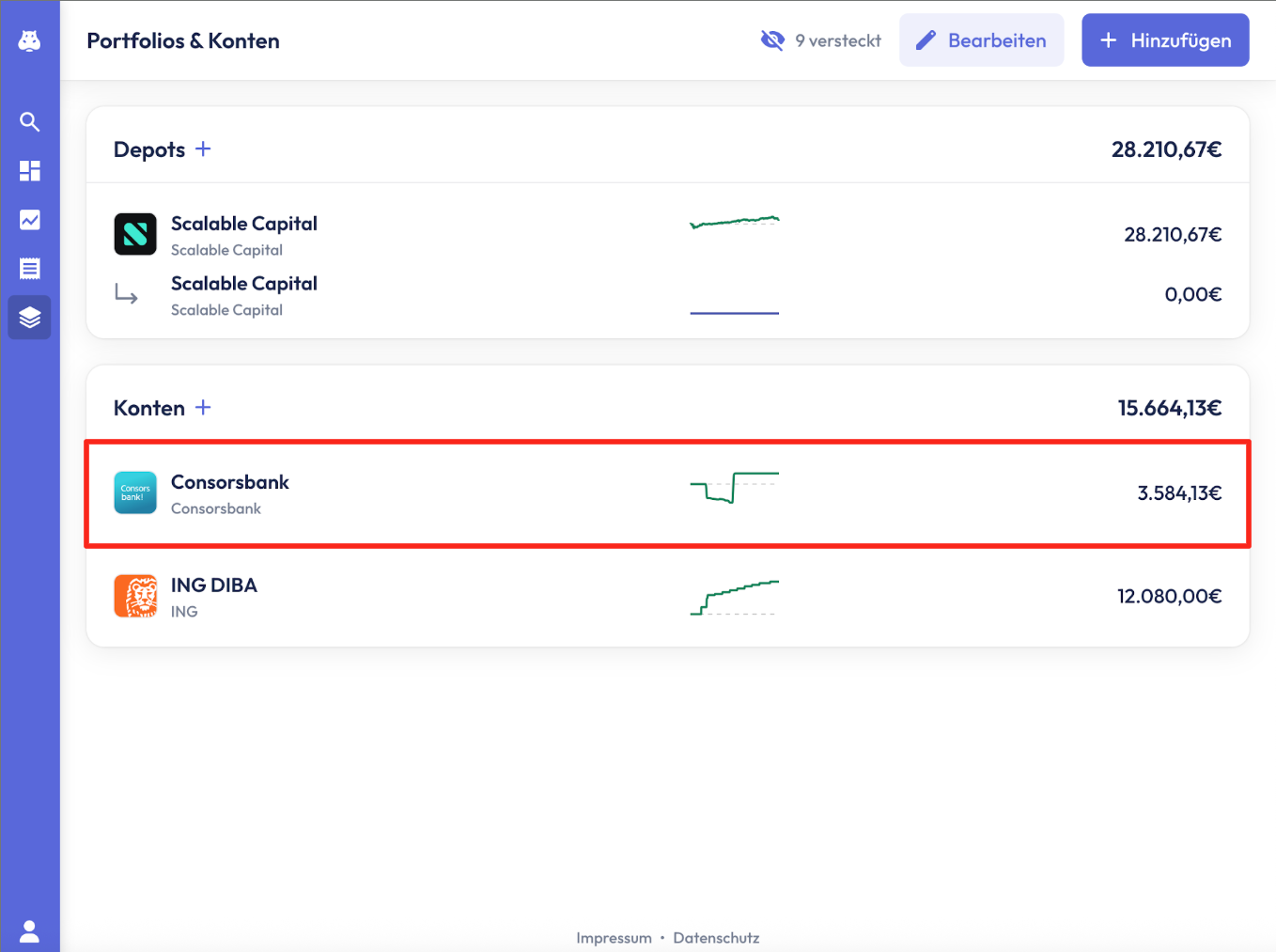 1. Navigiere zu „Portfolios & Konten“
