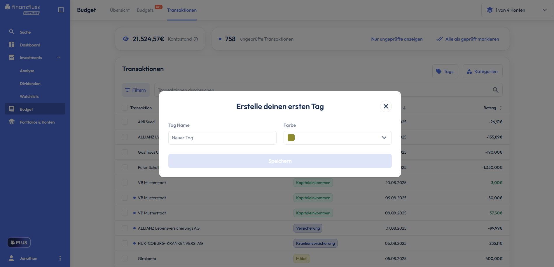 ✅ Prima, deine Transaktion wird jetzt mit deinem ausgewählten Tag gekennzeichnet.